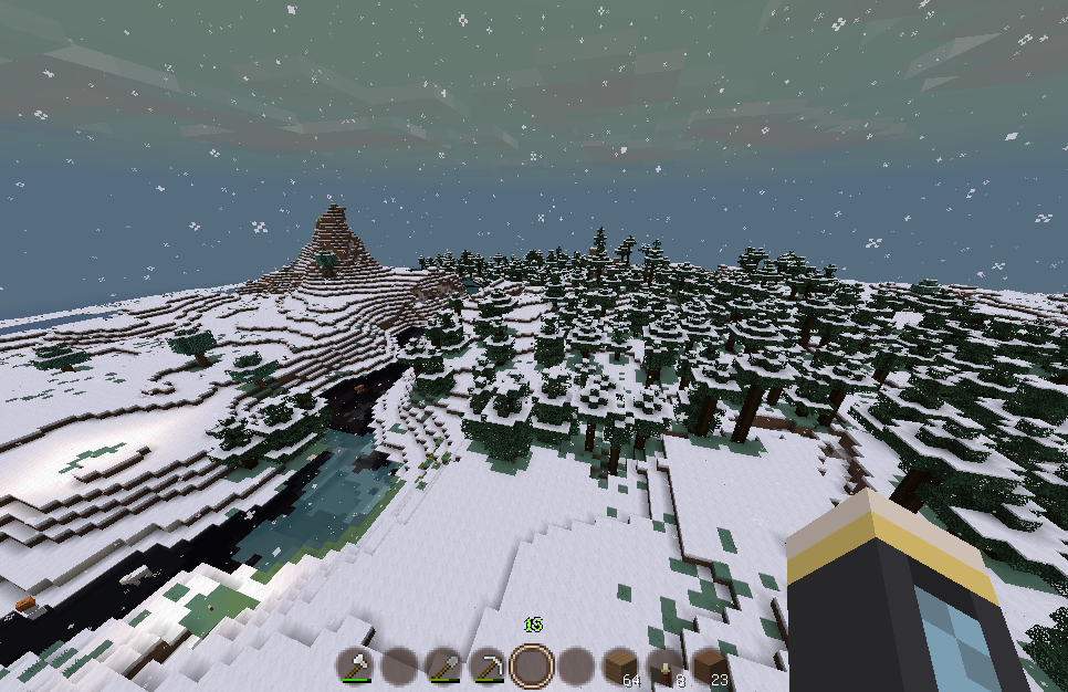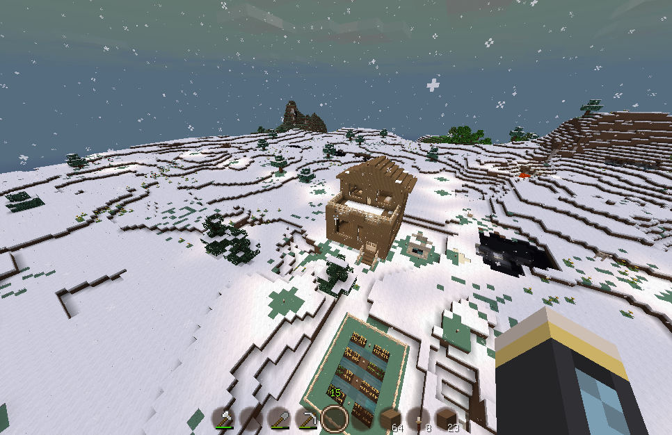 1.3.2の初回ワールドでは砂漠、しかもピラミッド目前にリスポン、両隣が砂漠とジャングルというカオスな地形で楽しげだったのですが、見つけた村で村人がほぼ絶滅しかけるアクシデントが起こり絶望。